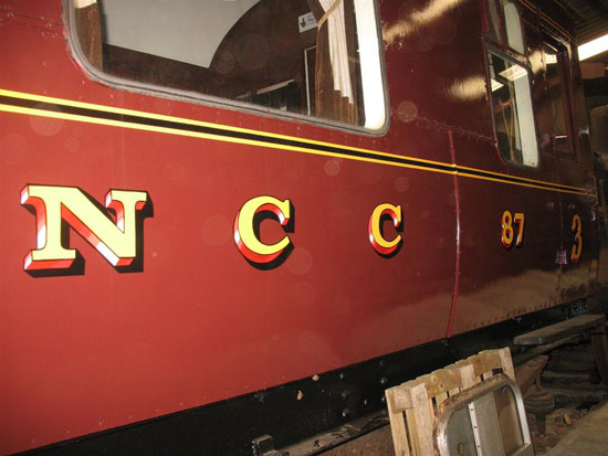 Now that I’ve introduced myself, I thought that (for my 1st. proper post) I should at least show that I can actually do a bit of signwriting…so I am posting a few pics of this LMS railway carriage restoration project that I just finished yesterday.