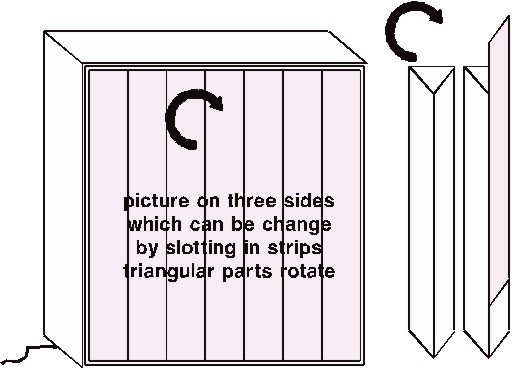 the inside parts rotate making three adverts as the triangle rotates every 30sec or so