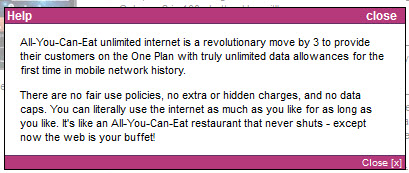 So then I see an ad by Three Mobile – All You Can Eat Data. Rather than go straight to the shop, I logged into an independent Three forum and quizzed the AYCE claim. Yup, it really is UNLIMITED – 1Gig, 10Gig, 100Gig, up to you. This was confirmed on my visit to a Three shop.