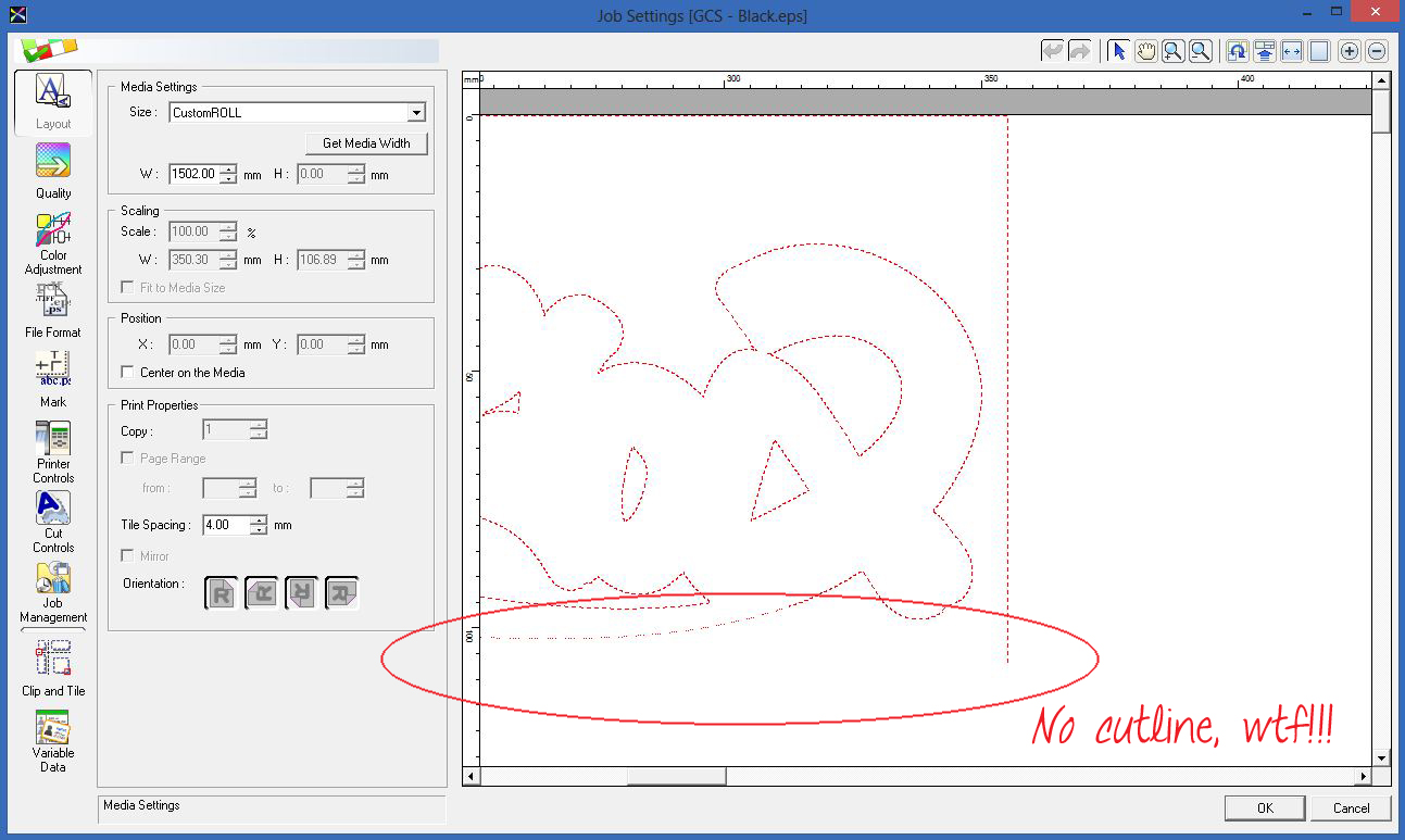 I am cutting some poliflex and for each logo I have made my own weed border (I don’t know if there is an option to have Versaworks create a weed border for you that isn’t exactly the same size as the job?) but for some reason it is missing the bottom cutline? It does this on quite a few jobs where it misses off the bottom line and I’m not sure why?