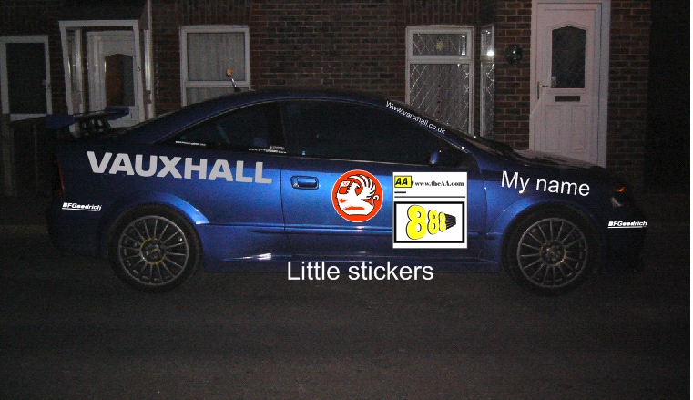 the car is one of only 100 triple eight astra’s built, and the guy is wanting to reproduce the championship winning car of 2001, except for the driver specific sponsors, using photo’s we’ve found, we’ve got the mock up this far, almost done !