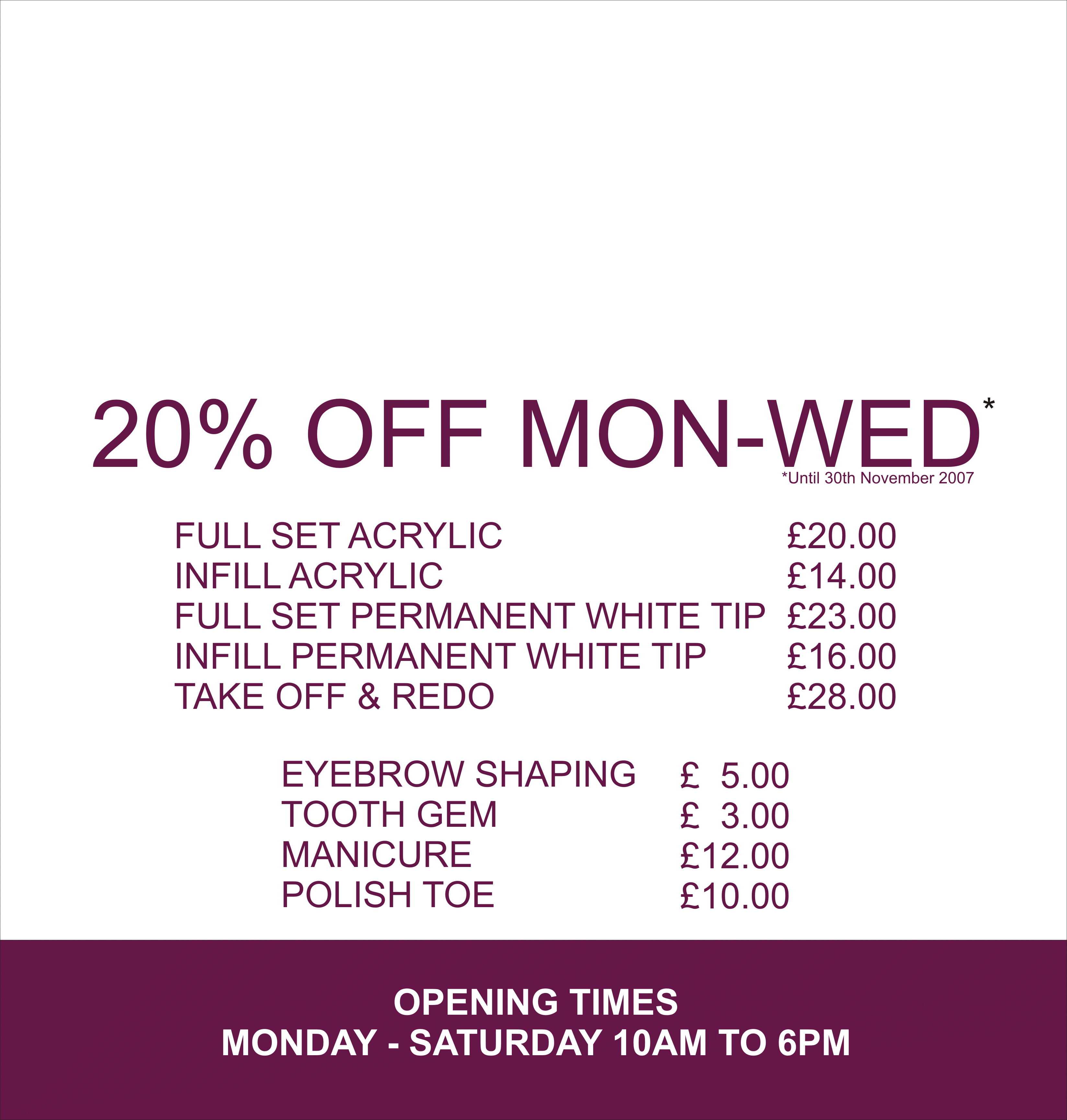 would appreciate a little guidance or suggestions on a simple window design for a nail salon, they will also have a facia sign that is already agreed.
