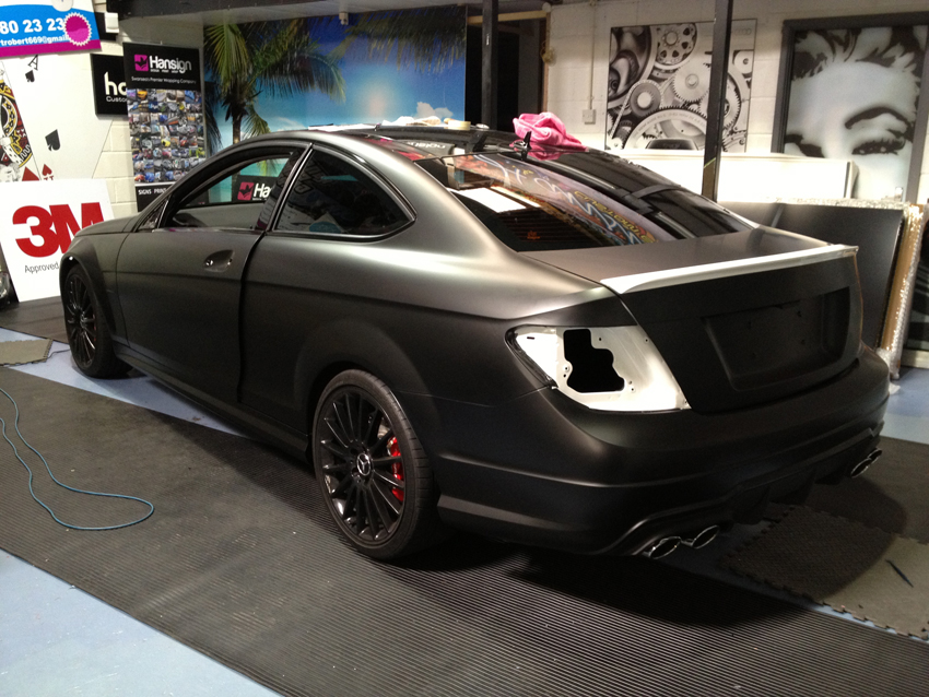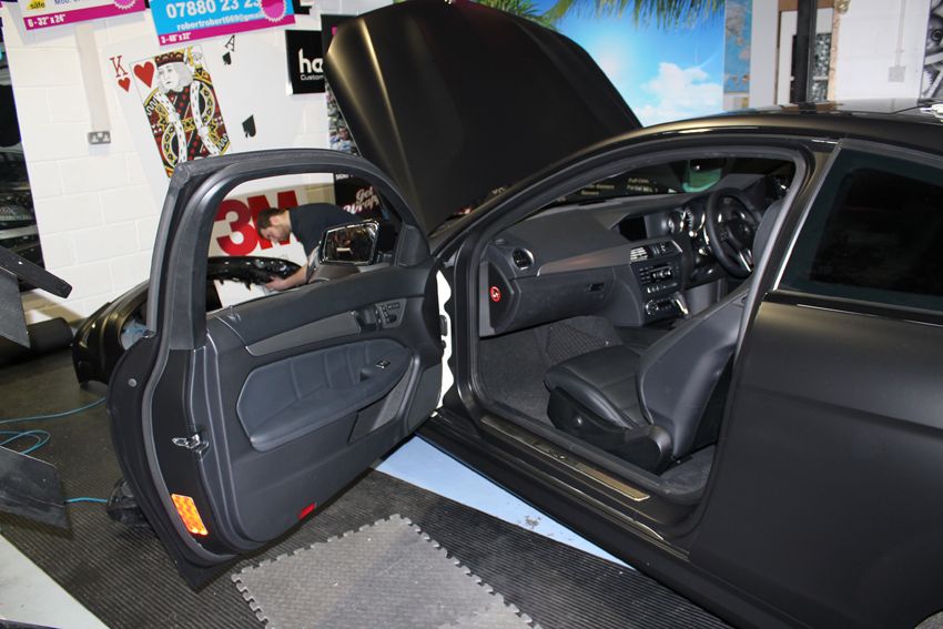 Only me again. Just a few of a nice mercedes done using 3M’s new Satin Black.. Great material to work with, a little tricky when it comes to stretching.. but soon got used to it. This was a big job, as i did the interior door shuts and the returns of the doors! and the Chrome surround around the windows and grills! looks better in the flesh 🙂