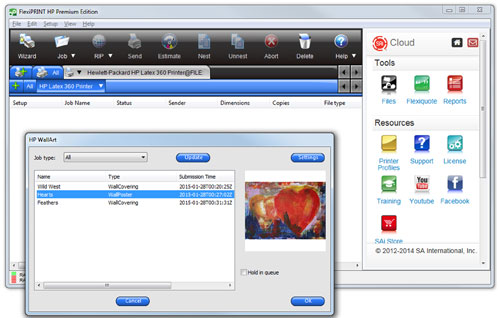 WallArt 3.0 helps large format print providers with HP Latex Printers, wallcovering manufacturers and designers to work more closely with interior decoration stores and eCommerce sites. Creation of wallpaper designs can be made from any location via the cloud-based HP WallArt application. Customers and designers can place images and patterns to create custom wallcoverings that accommodate doors, windows and other architectural features of individual rooms. Designs are uploaded to the Cloud from where large format print providers download PDF files for printing on their large format printers. WallArt 3.0 is free of charge for HP Latex printer owners. SAi Flexi interface enhances job processing and manageability