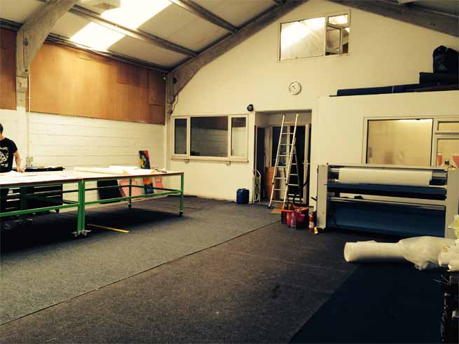 Should be in in two weeks time. Upstairs office, machine room, kitchen/stock room and reception along with room for a ex long wb van and a huge weeding table….FAB