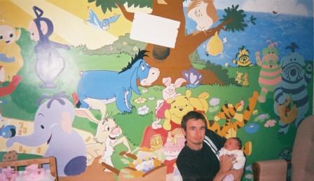 This is a mural I painted for my baby when my wife was pregnant. We didn’t know if we were having a boy or a girl so I painted unisex images like Disneys Winnie the Pooh, Teletubbies and Fimbles. We had a daughter who you can see in the photo but the problem is that we’ve just bought a new house and moved and since I rented that particular property I had to paint it out, I felt gutted, lol it was like painting my Mona Lisa out because I don’t know if you can tell from the picture but I painted it so it felt like the characters were coming towards you and hence forth it felt like you could step into the wall!