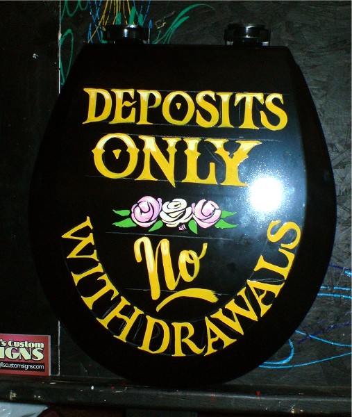 I painted 14 panels, one car tag, three bowling pins, and two toilet seats (new)