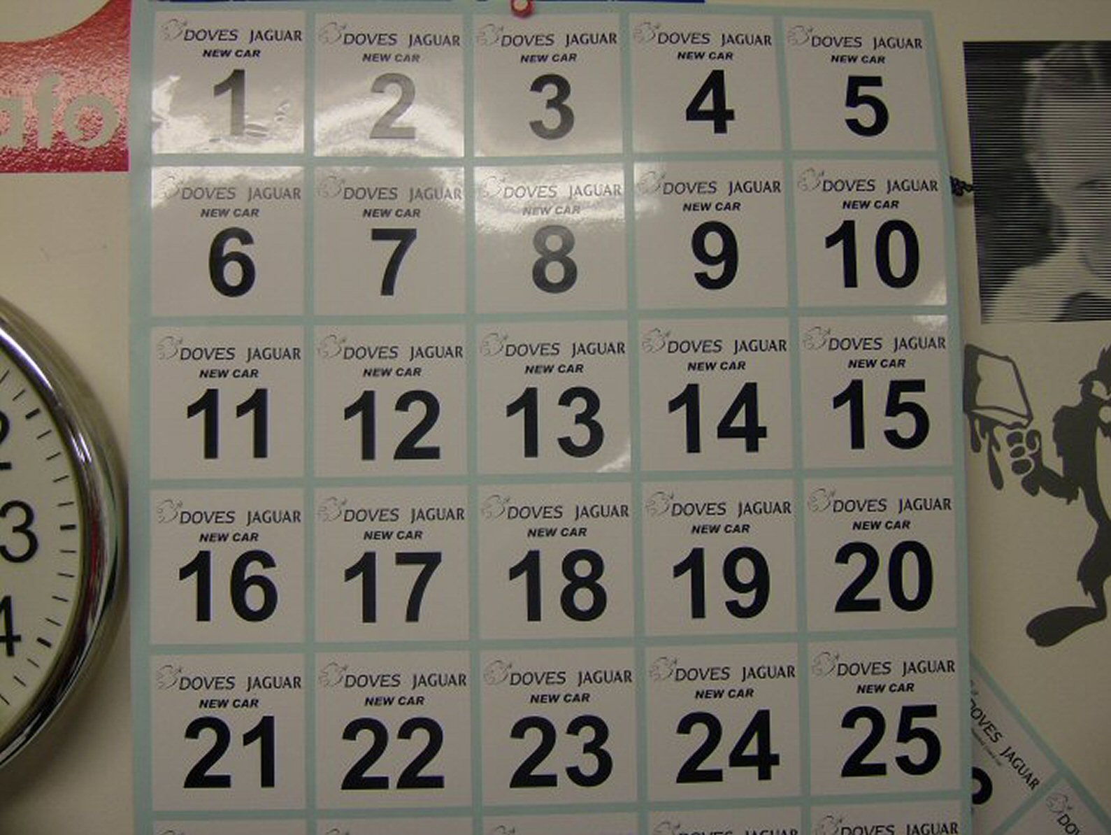 4inx 4in on white vinyl one colour black numbers 1 to 60 and 1 to 30