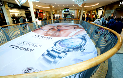 The firm produced a range of print for a Citizen Watches campaign running in Birmingham’s Bullring shopping centre. The campaign was the first to use Limited Space’s new ‘Connected Media’ concept, which the group formulated to deliver high-impact multi-touchpoint experiences for consumers via both digital and static out-of-home (OOH) formats as well as wireless network interaction and experiential marketing. PressOn printed and installed an atrium banner, lift graphics and additional graphics to surround a large digital media screen incorporating Citizen Watches product display stands. A team of five then installed all of the print in the shopping centre overnight.