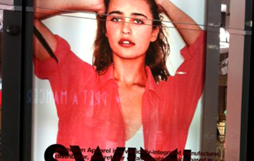 Graphics can now be easily removed and replaced as required by American Apparel staff without the need for installation teams to visit, which they estimate will give them a saving of around £500 per installation every time they need to change the graphic. According to Harrold, the Samba textile is a popular choice with PressOn for two main reasons; it is fire rated to British Standards which is extremely important to retailers and print buyers of POS and was particularly important to American Apparel and secondly, by using Samba, PressOn can either choose to use UV or latex inks to print as it works with both technologies.