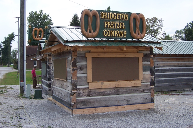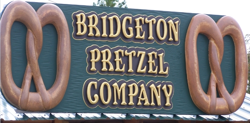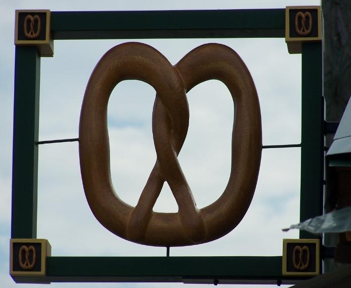 the smaller pretzel was brought into aspire as an stl, both sides, cut from 2 inch hdu and glued with mas epoxy. primed with coastal 88.gold paint is modern masters. big pretzels were glued to the hdu board with abracadabra snooth. hdu is backed with mdo.