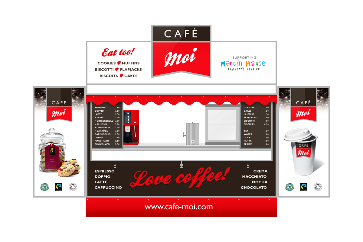 the only print was the wing boards, but the cafe moi logo was vinyl throughout to maintain colour consistency.