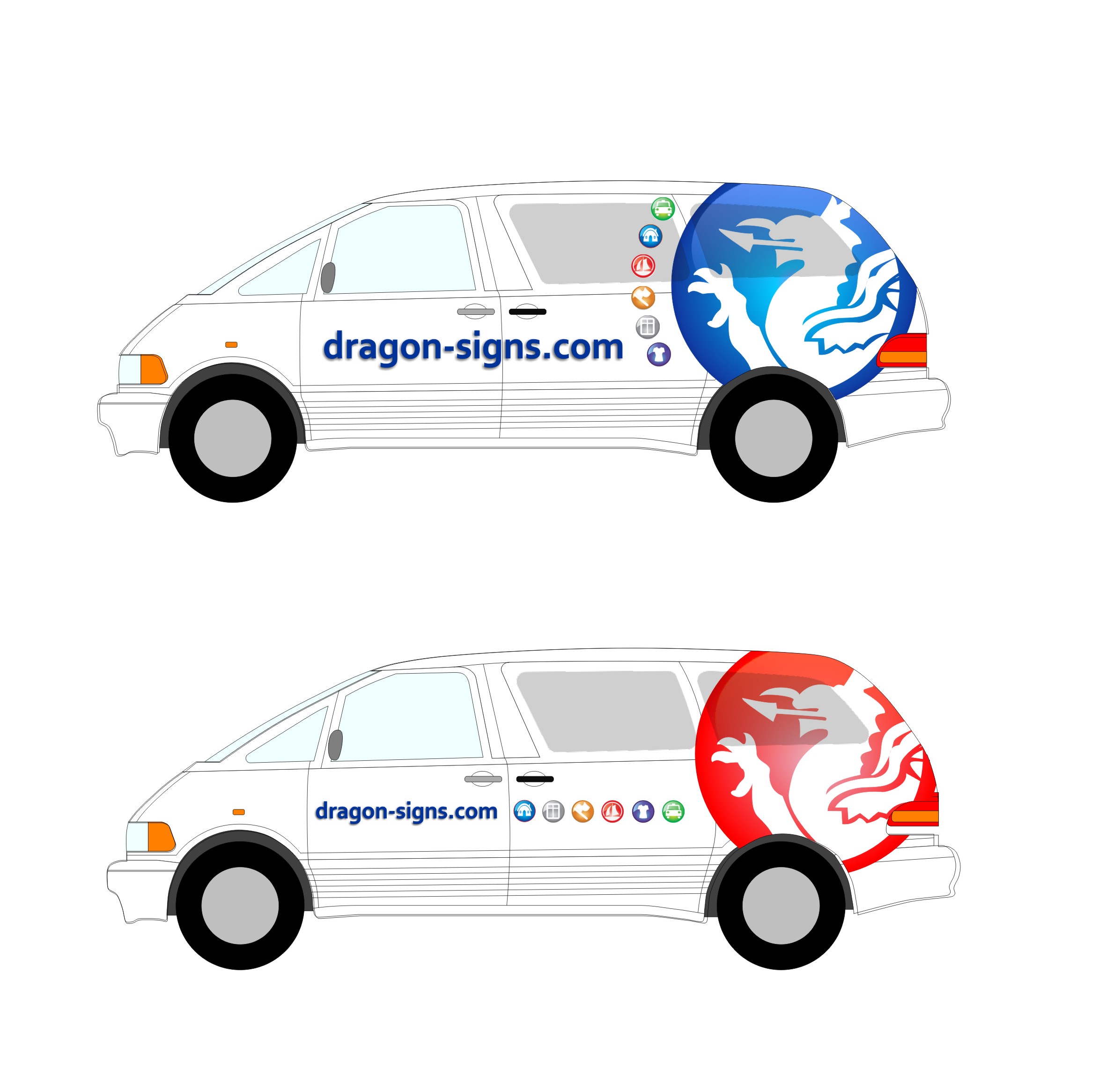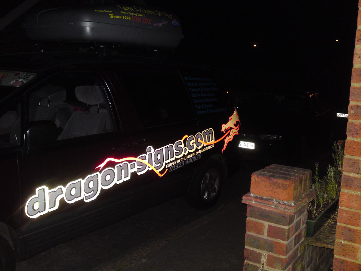 still not using a van so the Previa is the target, the plan was – some time ago- to wrap it black (reflective) and use an optically transluscent red film for the dragon, plan being that the dragon would light up as the black reflected white at night and, look iridescent during the day but, as the website is predominantly white, i reckon a rethink is in order, now considering the colour change to white with lam’d white contravision over the tinted rear windows and then applying whatever on top.