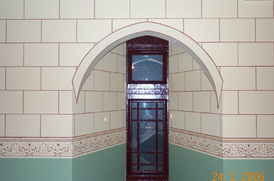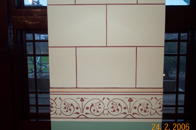 Not signs this post, but a skill that is employed by signwriters which is produced using a flat liner or lining fitch. Also I had to apply a stencil at dado height and at the top of the wall.