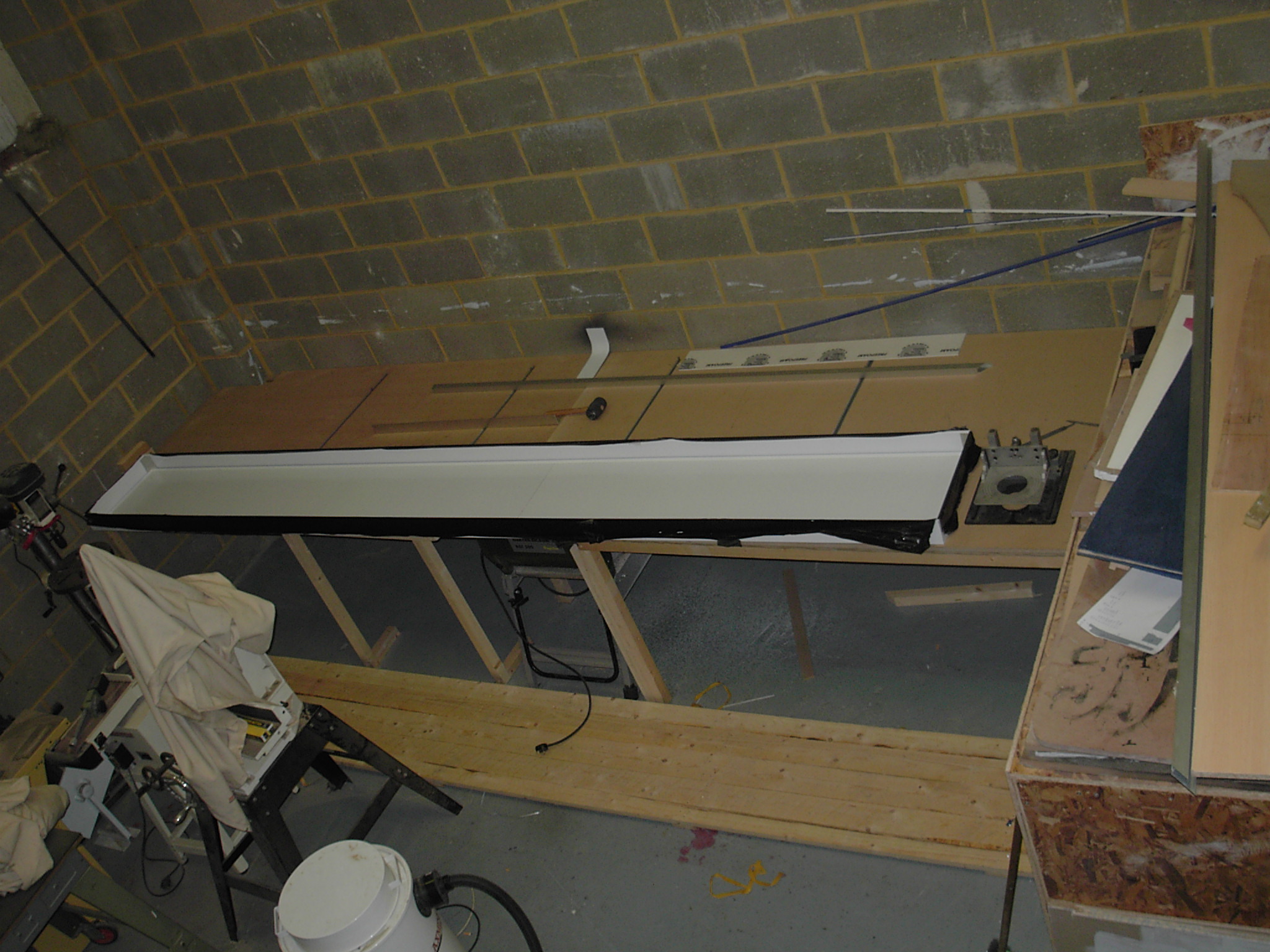 but because this tray was 2 x 3m pieces I felt that to position first tme excactly may have been a problem..Any way the job was done a lot quicker and without the mess of using a hand router. Another advantage would be the use of the full width of a sheet..