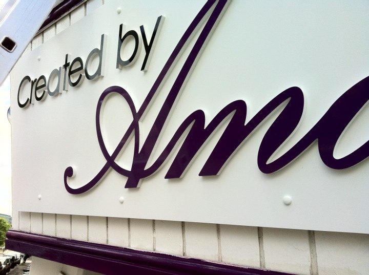 also the "Created by Amo" the screws could have been replaced by stand off locators to give extra dimension without lowering its cosmetic appeal, or loose the dimmensional letters as its not very apparent viewed at any sort of distance and replace with vinyl. in turn adding frame which will give a better finish. by that i mean "a bit of a compromise on how its manufactured may aid in reducing cost and in turn, create a better finished sign.