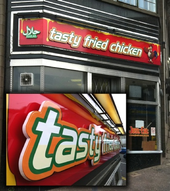 for instance, the Sizzlers sign is nicely designed, but losses its appeal by the lack of frame and the "button on pillow" effect created by screws through the face over tight or near edge.