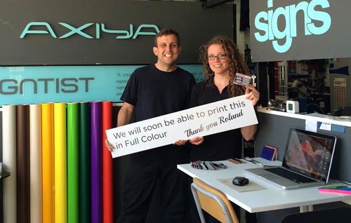 Attendees to this year’s premier sign making and digital printing event were able to visit Roland DG’s stand to collect a ‘Scratch & Win’ scratch card, with a variety of prizes on offer from mugs to caps – and those lucky enough to draw a grand prize winning card earnt the chance to win a part of Roland DG’s latest generation of print technology.Axiya Signs was the lucky company that won a choice of one of Roland DG’s newly launched TrueVIS VG Series print and cut devices or a SOLJET EJ-640 printer to boost the business’ offering; and opted for the TrueVIS VG-540 as the natural choice for their business needs.