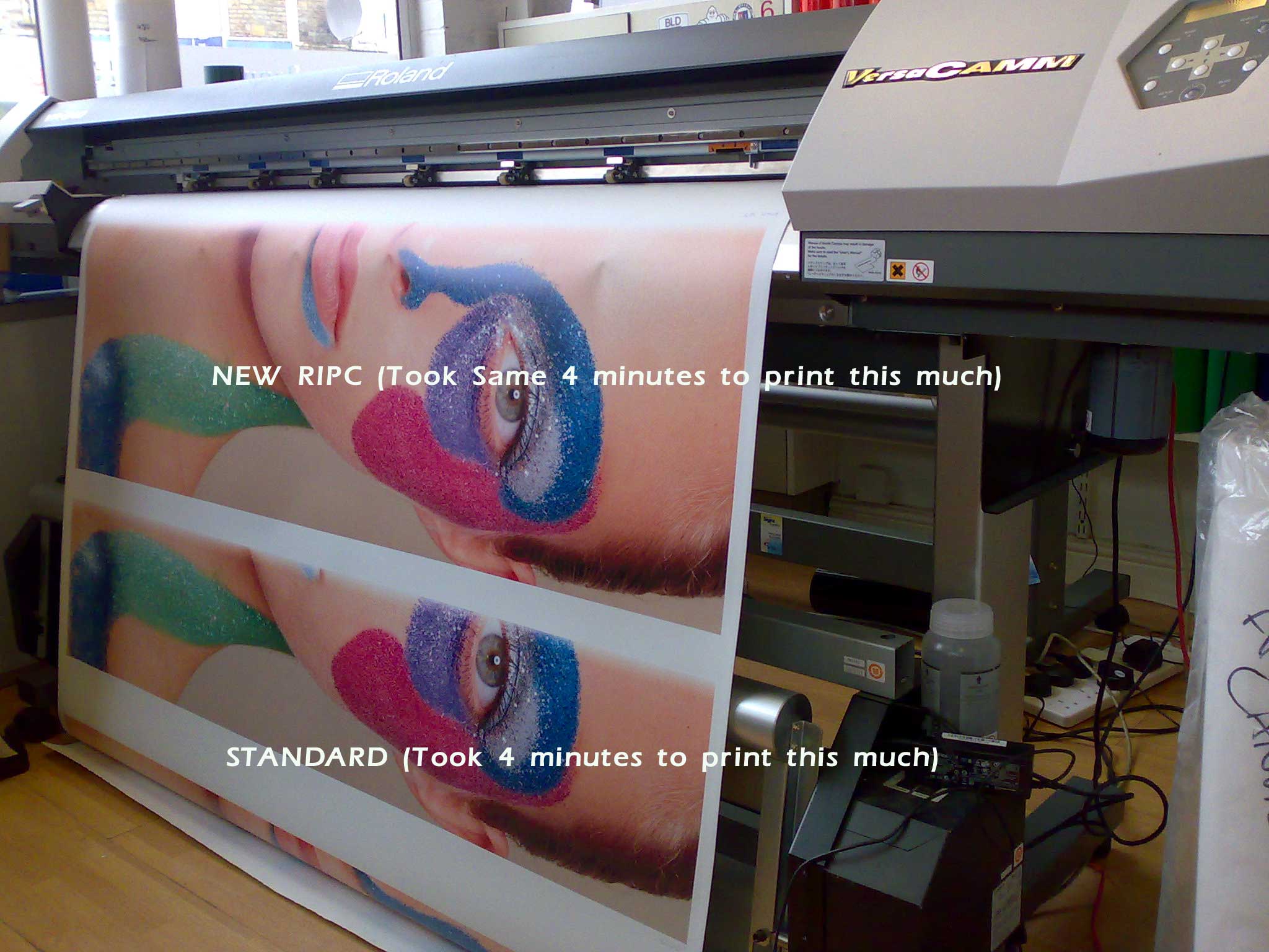 The increase in print speed is around 80% quicker in standard mode.The RIPC rip feature puts down a "filler pass" of ink that virtually eliminates banding.