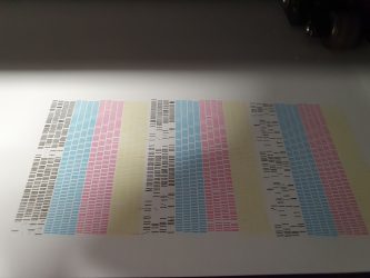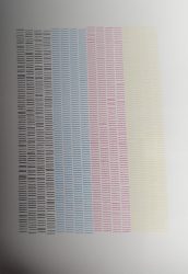 Looking to see if someone can advise as to whats going on with my black head. When i bought the machine (second hand) the black head test prints always looked all over the place. So at the start of this year i bought a brand new head, which was fine. But the black is away as bad as ever. It only seems to be the black. Attached is what it looks like now. On the right is what the test print just came out like, and the proceding two are what its like now after doing head cleans…. its as if the black doesnt do the self clean periodically like the others.Every time i boot it up i have to go through the whole head clean thing to get the black back, and even then its not great. I have recently replaced the cap toes aswell, incase that was the issue.