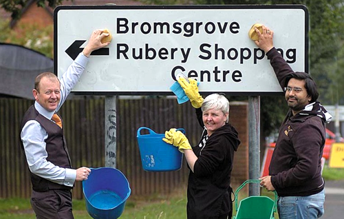 A trio of Rubery business owners have been taking the town one sign at a time in their bid to clean the area up and attract visitors. Ian Robinson, from Robinson Opticians, Annette Taylor, from The Signpost Cafe, and Stuart Gill, from Gills News, have tackled more than ten signs so far and left them sparkling clean. Mr Robinson said it all began when the Rubery Village Business Association reformed and its members went from being three to 23, literally overnight.