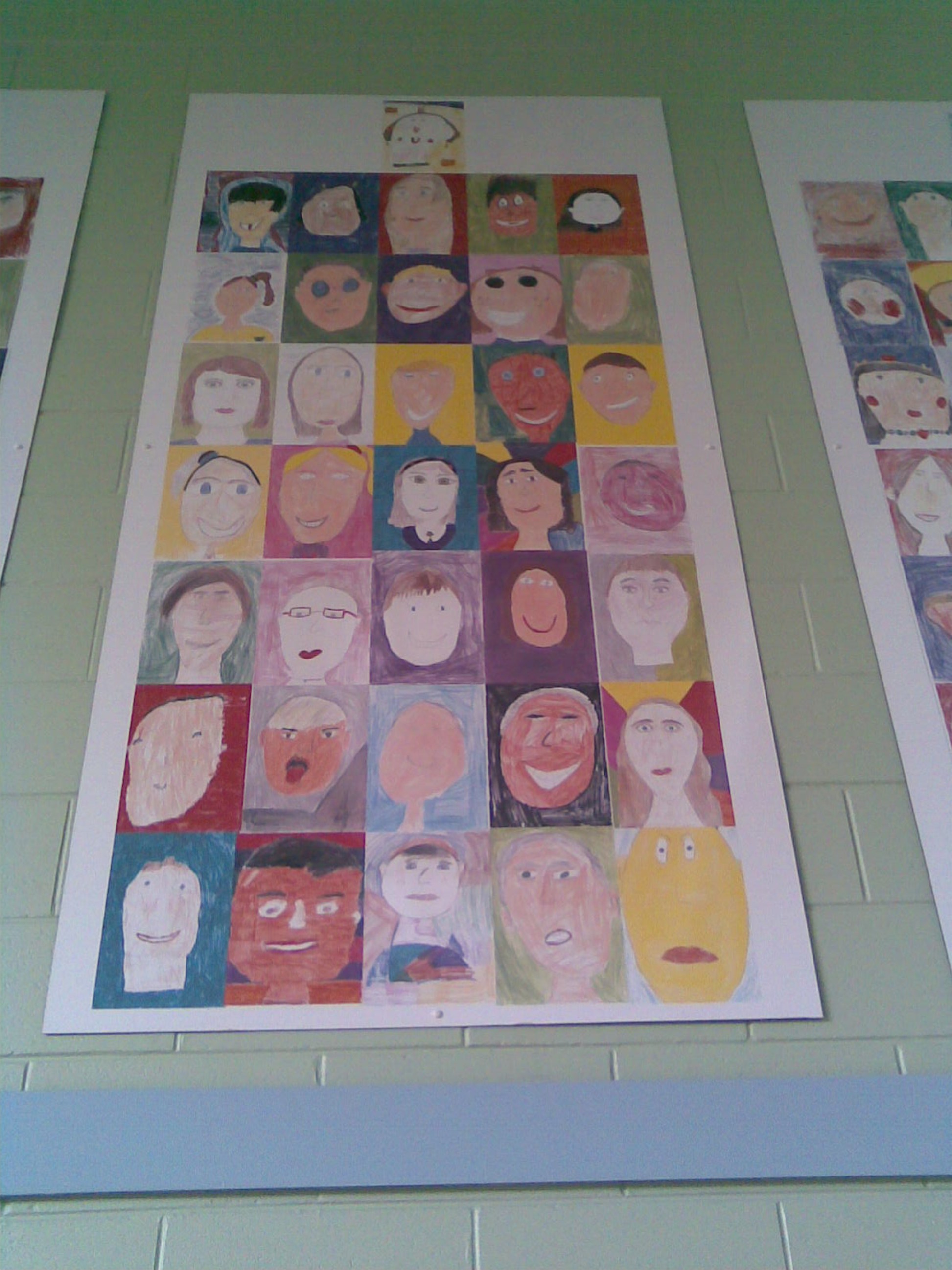 Posted by Harry Cleary on 12 June 2009 at 22:37Something a bit different for us….all the kids and staff where asked to do self portraits to commemorate the first year of their new school building. Portraits where then scanned and printed.