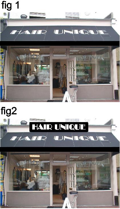 To increase visibility this client is looking for a sign above his canopy as shown in fig 1 (now) and fig 2 (with new sign)