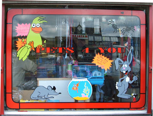 My head hurts now Jill, Pets Needs or Pets needs mmmmm grasped what your on about got me saying it to myself over and over again and then remind myself his choice of wording, yeah looking at it again a yellow background would have helped it stand out better, and as for attracting the kids to the shop that was my whole idear, got something right at last :jump: