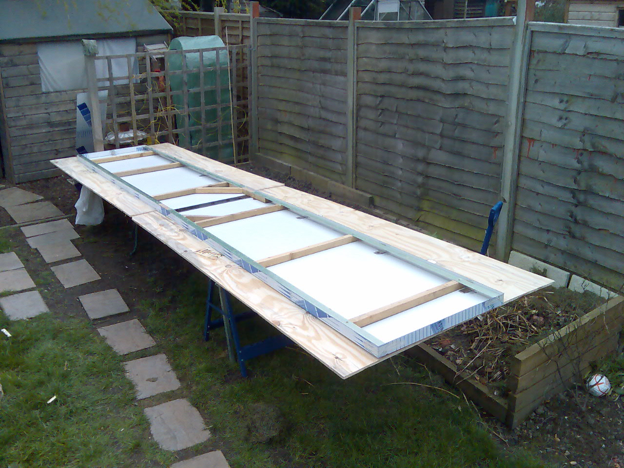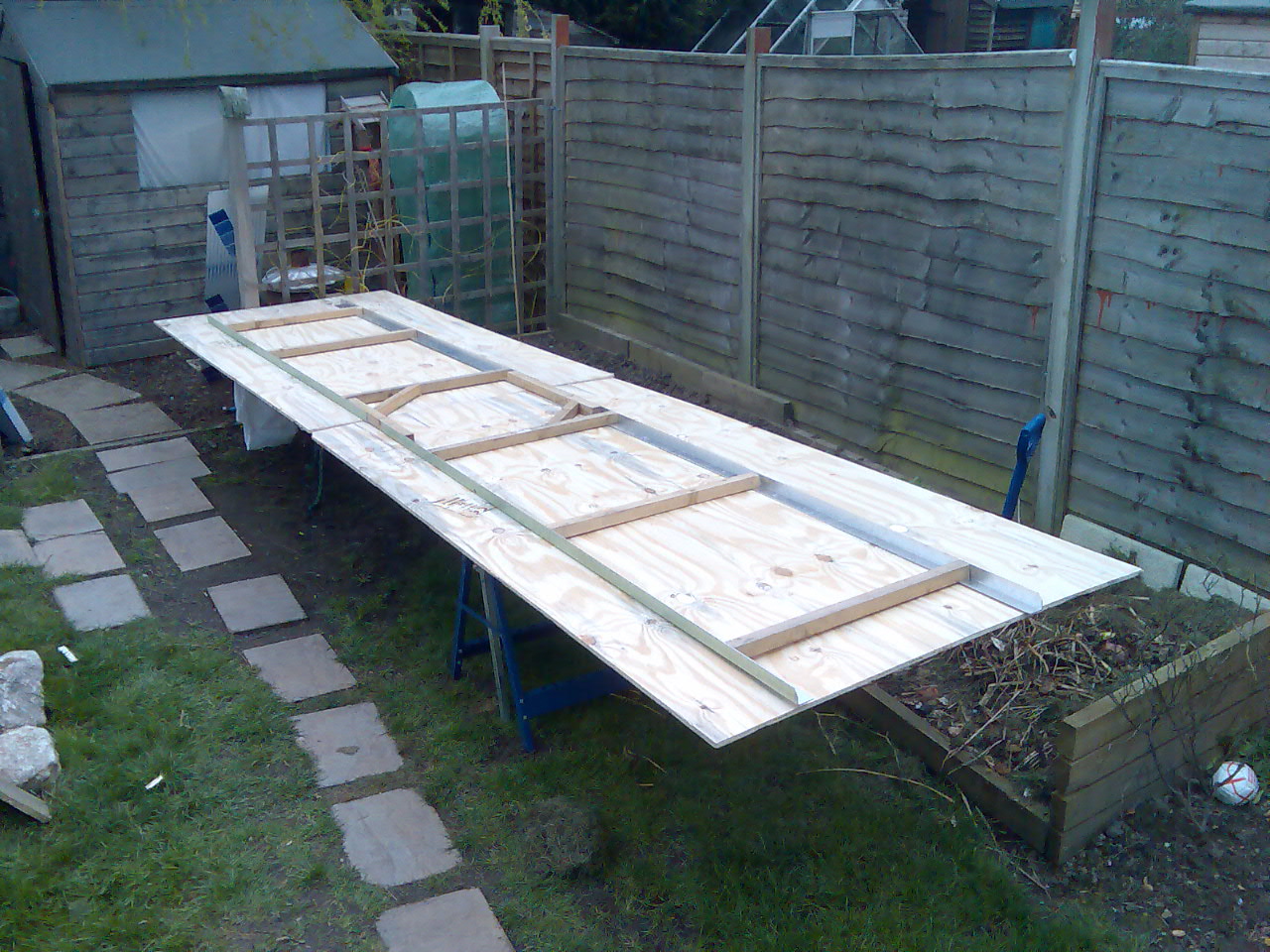 ps, had to make a new workbench for this one ! 2x 12mm shuttering ply, 2x 4.8m 50×100 timbers, one tressle and a patio table !
