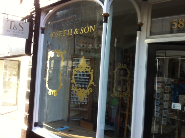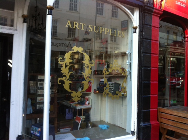 did these in my spare time when not making aircraft markings and graphics in my full time job. Etched glass window graphics and logo design for hair salon and some gold picture frames and black chandelier installed ready for my freinds art shop xmas shopfront display. any comments appreciated