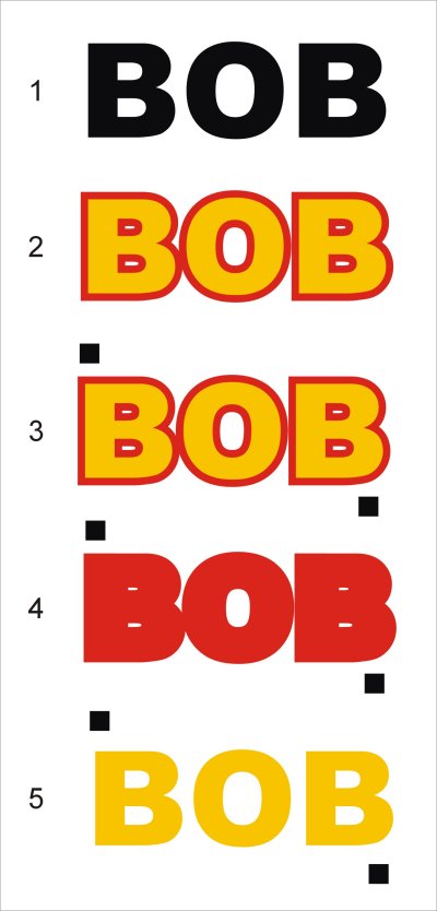 When you’ve taped them up, lay the outline first with the boxes. Then overlay the original text, lining up the boxes with the boxes from the outline. When done, remove the boxes, hey presto, multi-layered graphic and its lined up perfectly 😀