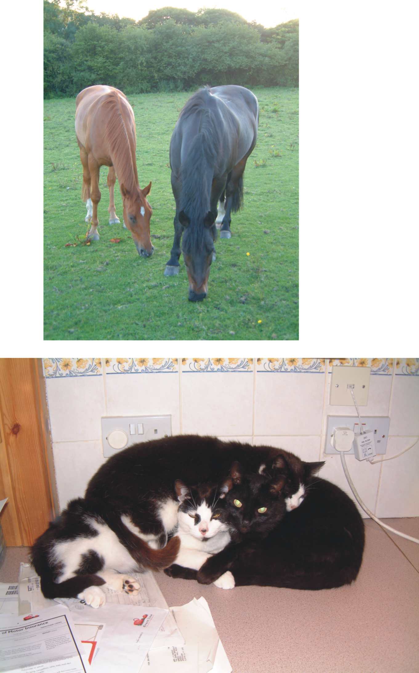 No dogs for me just cats and horses, there are actually 3 cats in that picture :lol1:
