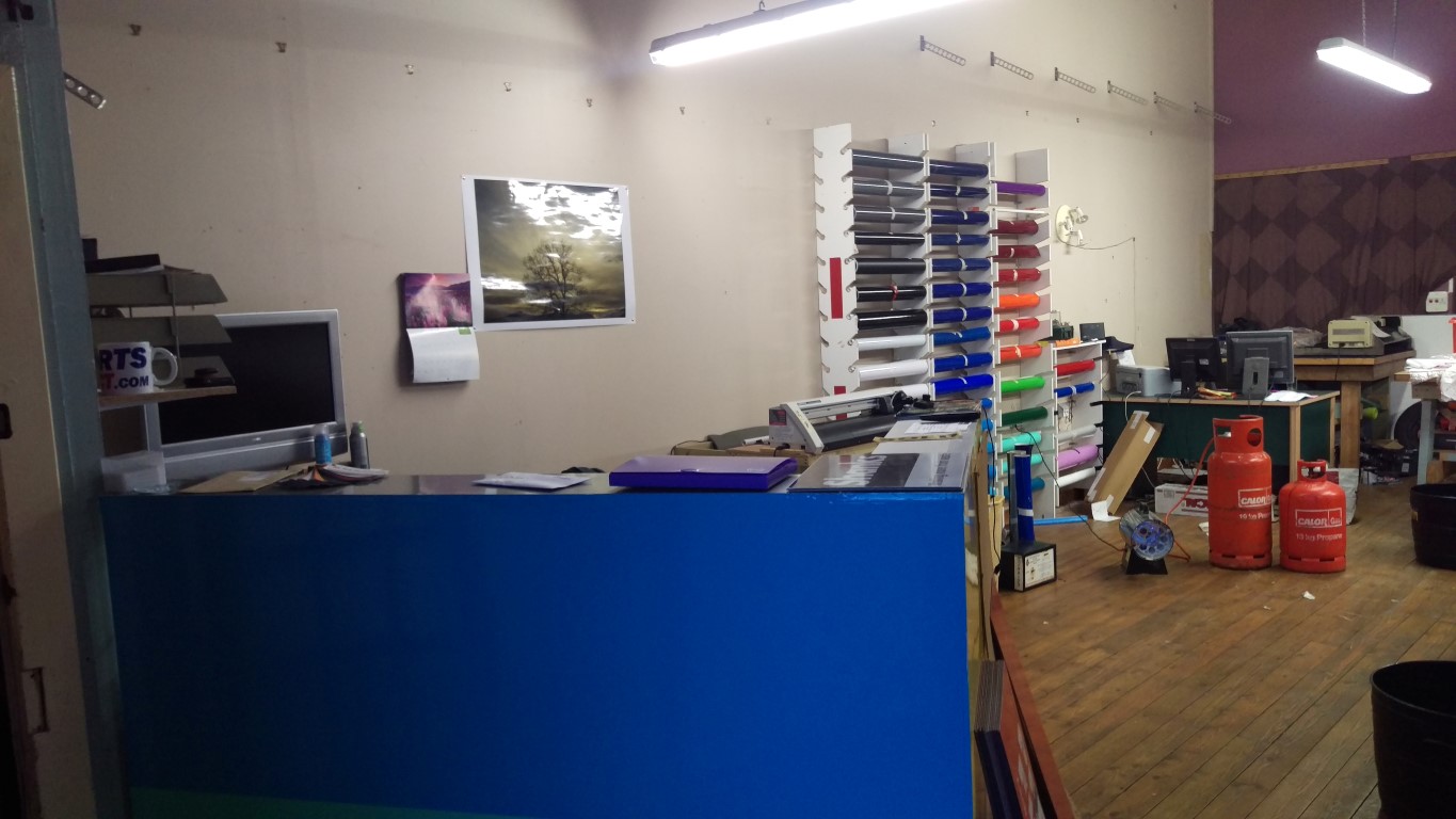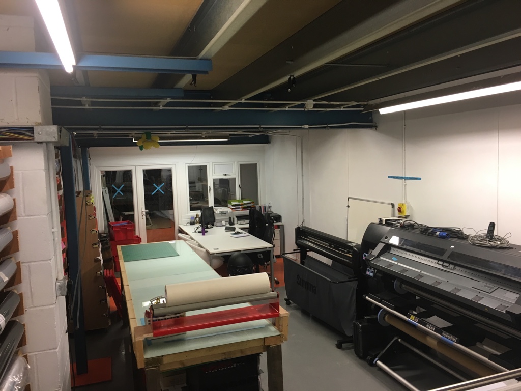 After 6 years of struggling with space, I’m really happy with the space, we’ve just spread the production into one side, and the other half is empty (except some of the previous tenants bit’s they’ve not collected yet), for doing vans, making up signs.