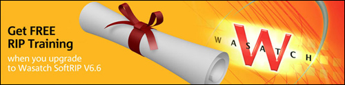Users of the popular Wasatch SoftRIP software will be able to upgrade to the recently launched v6.6 version of the popular RIP, and take advanatge of a special offer to get free training for their RIP operators.