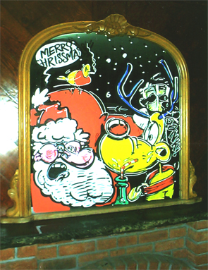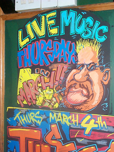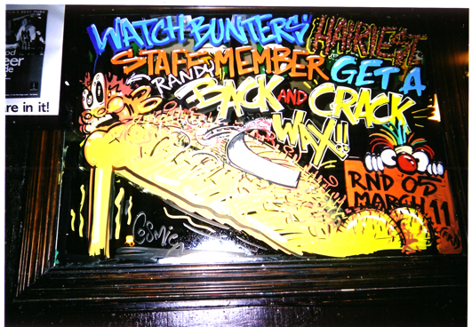 This mural was for a tequilla-flavoured beer promotion. I did it through the night. getting locked in (the beer garden) when the pub shut and then set free when the cleaners arrived and going straight to bed!