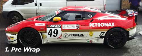Signtek was contacted by the team from Lotus Sport at 5.15pm on a Wednesday evening to ask if it was possible to wrap a Lotus Evora in time for a race in the British GT Championship on the Friday. The challenge involved the team at Signtek recreating from scratch the artwork using photos for reference and producing the specialist vinyl needed to wrap the car. They also had to strip the car of its existing livery, featuring the previous season’s design and clean it before applying the new wrap – all within a 36-hour period. Quality was paramount, there was no margin for error – the end result had to reflect Lotus’ standing as a high profile team in the British GT Championship. The pressure was on, Lotus Sport needed the project completed on time in order to transport the car to the world famous Nürburgring in Germany in time for the qualification session.