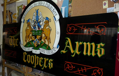 He tossed a drawing of some weapons into a skip, which was picked up by a quartermaster and he was made the infantry’s signwriter. After leaving the Army he got a job in Maidstone and left after 18 months to go self-employed. He started off creating his signs in a shed at the bottom of his garden in Livingstone Road, Gillingham.