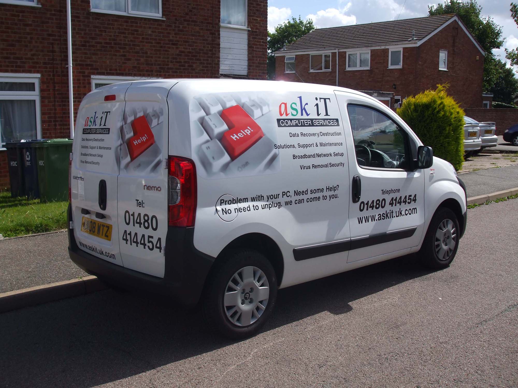 nice work a couple of crits, on the ask it van you had enough room to move "problem with etc" up above the arch,and on the black van which I like layout and design, you could have put the phone number in the middle , thanks for sharing.