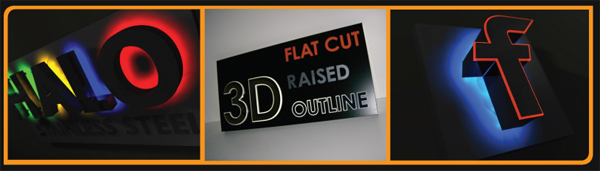 Speak to fabricut, they can make edgelit and backlit stainless letters,and they work really well. the "f" is the example! Goodluck