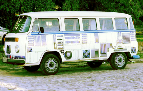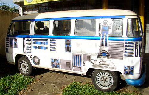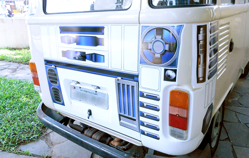 César Aguzzoli is well on his way to becoming a Jedi Knight after converting his family’s 1992 Volkswagen Camper into an R2-D2 look-alike. The 26-year-old Brazilian, now living in San Diego, was inspired to start the project after a Star Wars marathon with his friends. Aguzzoli spent over 50 hours designing the 105ft2 (9.75m2) vinyl wrap. “R2D2’s body is a cylinder, so our initial idea was to unroll the cylinder and wrap the bus with that pattern. But it ended up not becoming one with the force, I mean the bus…So we chose the hard way and decided to re-imagine and recreate the layout specifically to fit the van,” Aguzzoli writes on Instructables. The project remains unfinished for now, as César Aguzzoli now lives in the United States. However, there are plans to eventually add a Millennium Falcon themed roof to the old camper.