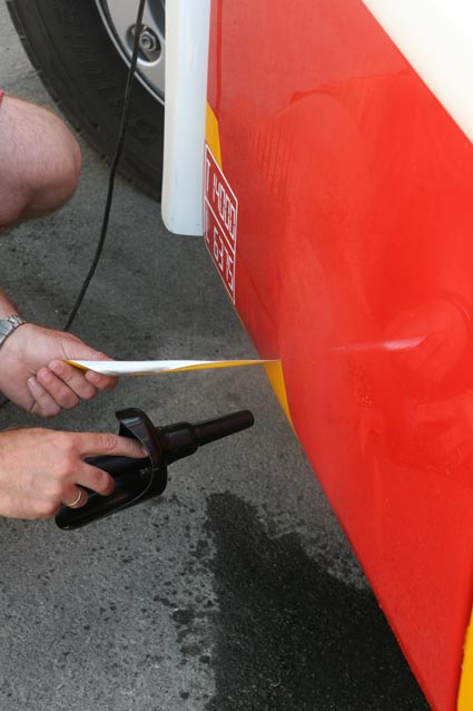 We had to remove some Reflective vinyl stripes, we had fitted the wrong way.