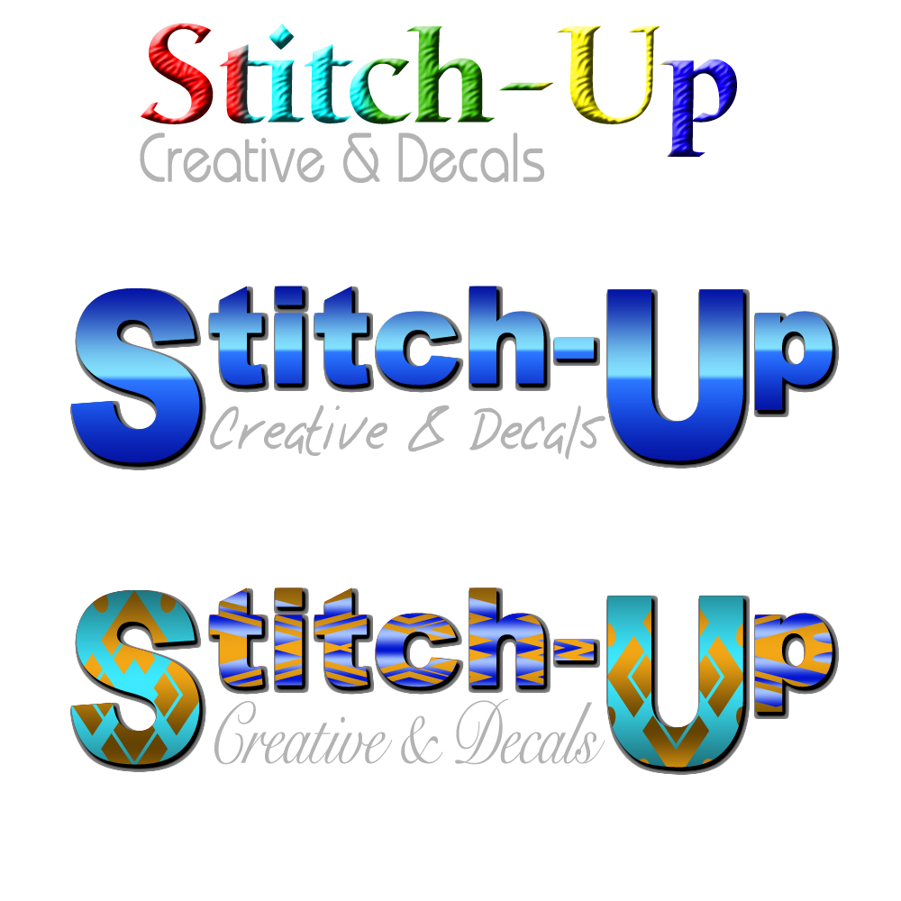 A designer did send me some ideas, but I don’t like them and the use of the words ‘Creative & Decals’ is just wrong. When we started out, we just used Stitch Up then, when I started looking for a domain name, I introduced the ‘-‘ between Stitch & Up (Stitch-Up). We then started doing some printing, decals, sublimation & labels so we started to use Stitch-Up Creative and I guess the strap line, Embroidery & Print.