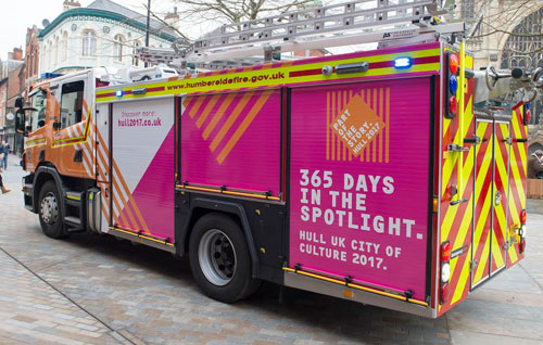 The Hull sign makers fully designed and completely wrapped the fire engine at the station using the community brand guidelines for the City of Culture 2017.
