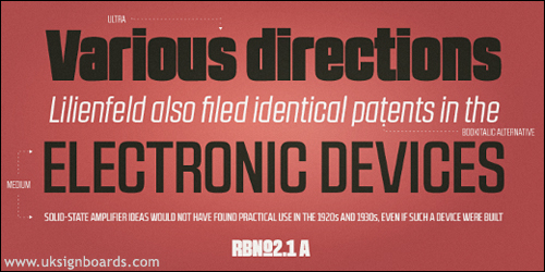 A versatile typeface that is strong in headlines and legible in text, with a range of distinct weights from delicate thin to chunky ultra.