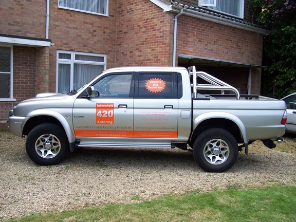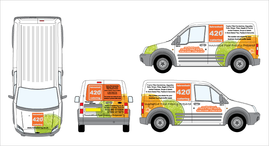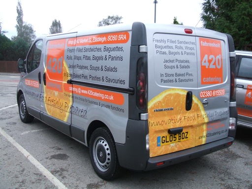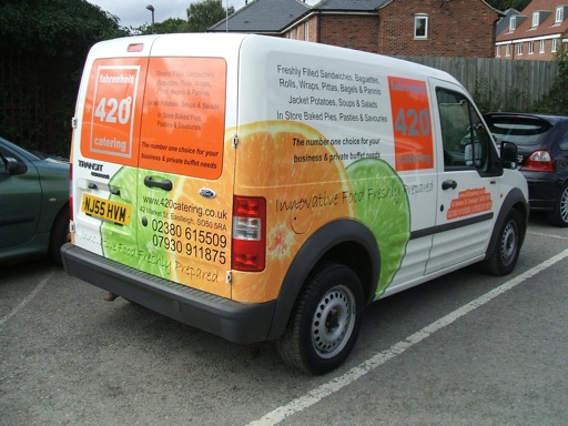 The last year when they bought the van I suggested the picture of the orange to add some extra colour and the digital print to make it more eye catching (they have since used the orange for everything from menus to flyers and even a large one on the wall in the shop.
