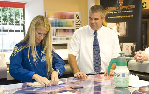 Signs Express managing director Craig Brown commented on the event: “We were very excited to be given the opportunity to receive such special guests. The scheme to help promote technological learning is important in this day and age, especially as the number of students studying sciences and engineering is decreasing year-on-year. Listening to the experiences of both Ken and Karen was inspiring. I do think, however,” Craig continued with a smile, “that the pair could possibly reconsider their career choice after their quick lesson in sign making from our operations manager Justin Pearce. I think we saw a lot of potential.”