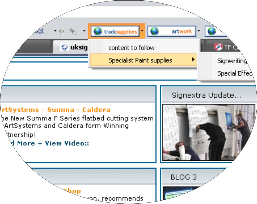 you will see a + Sign. click that and you will see uksignboards tab. select that and you will be on the original bar again. 😉the secondary one is being worked on but updates wont be visible for a few weeks yet. 😉