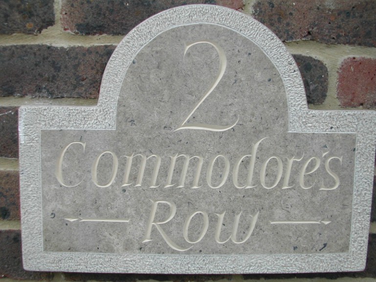 Posted by Nobby Thomas on 26 February 2005 at 22:35Local Purbeck Marble, Hand-drawn and carved own style cursive Roman letterform painted with tan/white 1Shoe signwriters enamel.