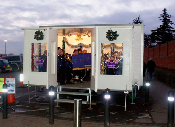 As it is, the stuffs been collected & is being applied today, ready for the band’s debut performance in their new mobile bandstand tomorrow (on Tesco’s car park, of course!)
