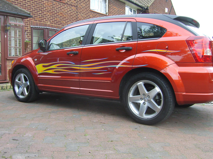 Home › Forums › Sign Making Discussions › Gallery › vehicle graphics: flames Gallery vehicle graphics: flames Posted by Terry Bull on 17 August 2007 at 16:15 A new Dodge Caliber airbrushed in magenta n orange inks onto 9800 drew the flames specifically to loose a scratch just over the rear arch Terry Attachments: Ade Brown replied 17 years, 3 months ago 6 Members · 6 Replies 6 Replies Graeme Harrold Member 17 August 2007 at 16:17 Exceedingly nice cover up……. Jill Marie Welsh Member 17 August 2007 at 16:27 I really like those colors, Terry. Love….Jill Neil Davey Member 17 August 2007 at 17:07 Hi Terry, great flames. What ink did you use? Neil Terry Bull Member 17 August 2007 at 17:26 SERICOL polyplast py available in 250 / 500gms / 1litre as you dont use much it goes a long way Terry Lynn Normington Member 17 August 2007 at 18:16 nice work Terry pity you didn’t make it to wales you would have loved it 😀 Lynn Ade Brown Member 30 July 2008 at 22:33 Yes looks good Terry!! need to be gettin on with it for next week – not enough hours in the day at minute.. Got clothing coming out me ears!! Ade Log In to Reply Log in to reply. Public All Members My Connections Only Me PublicAll MembersMy ConnectionsOnly Me Public All Members My Connections Only Me Log In to Reply Start of Discussion 0 of 0 replies June 2018 Now